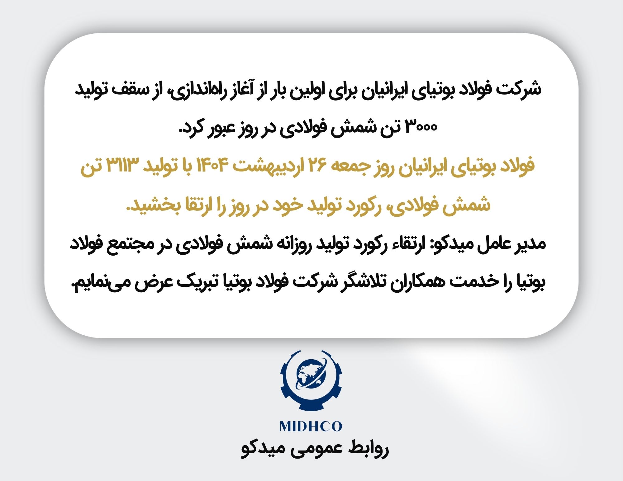 پیام تبریک مدیرعامل محترم شرکت فولاد بوتیای ایرانیان، جناب آقای دکتر خسرویراد